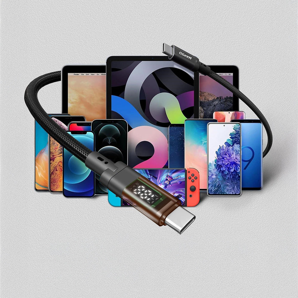 Qgeem QG04 Dijital LED Göstergeli Type-C to Type-C PD 40G 8K@60Hz Data Kablosu 240W 1M