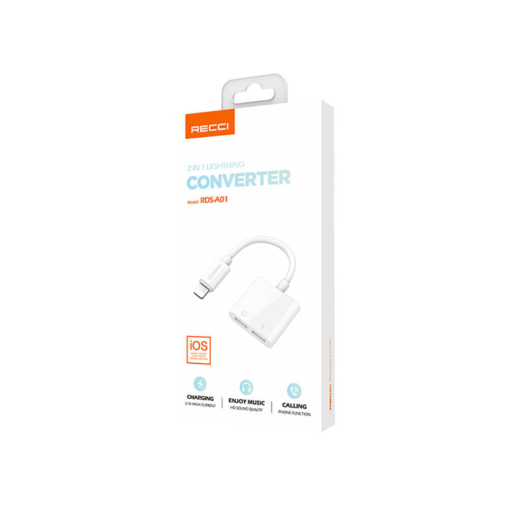Recci RDS-A01 Lightning 2in1 Şarj ve Ses Adaptörü Beyaz
