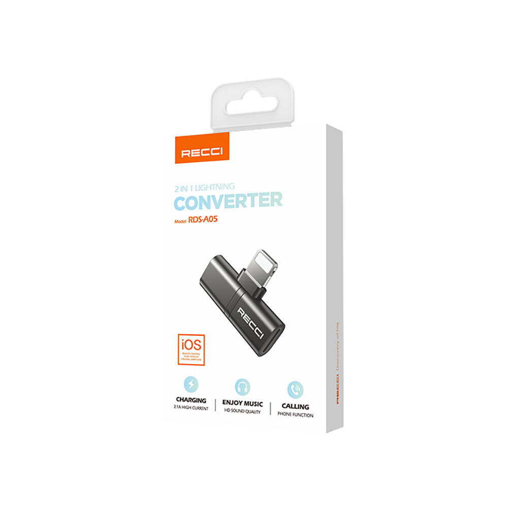 Recci RDS-A05 Lightning 2in1 Şarj ve Ses Adaptörü Siyah
