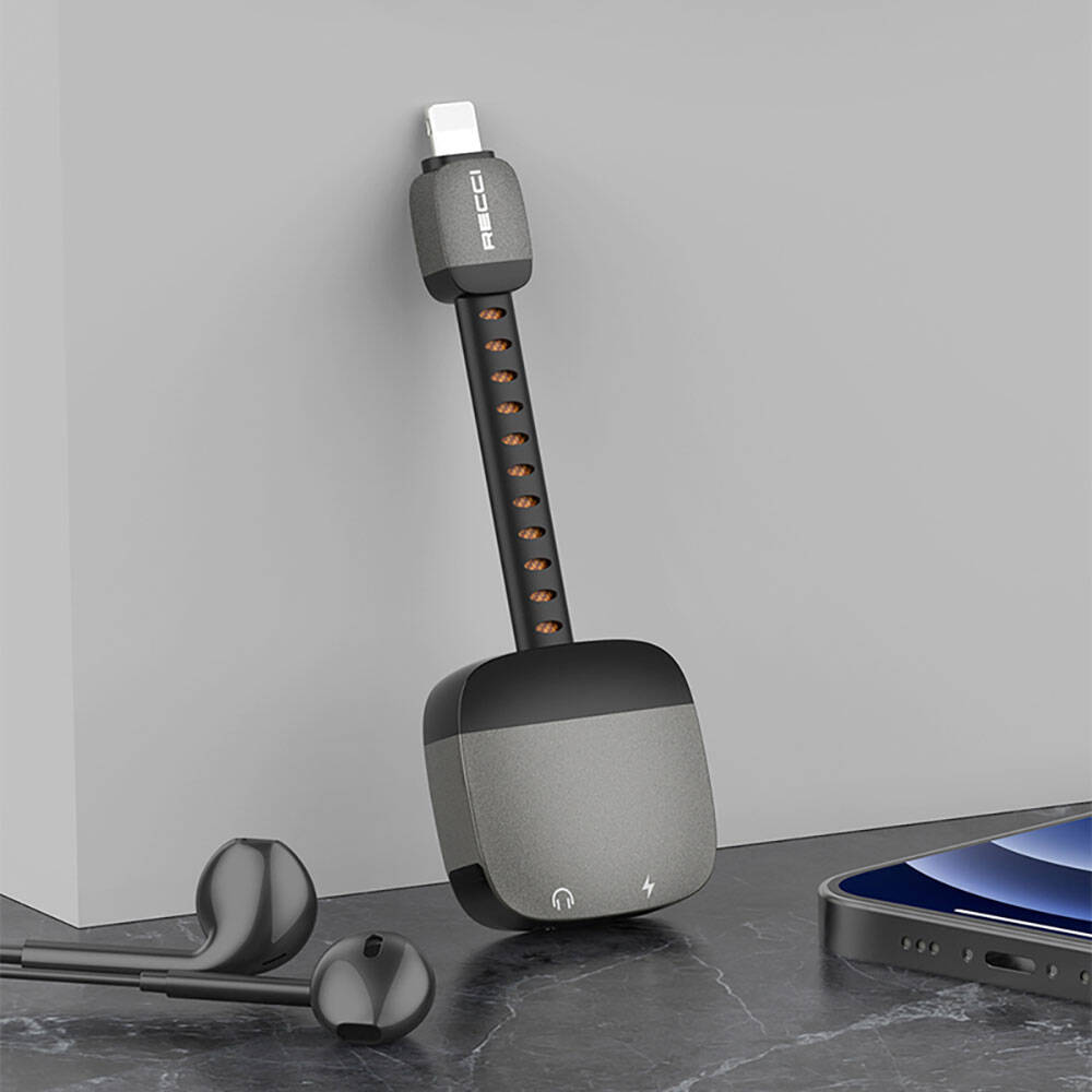 Recci RDS-A12 Lightning 2in1 Şarj ve Ses Adaptörü Siyah