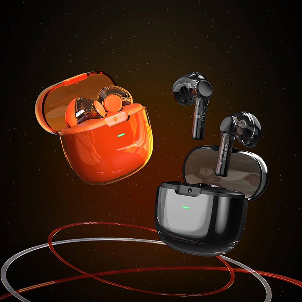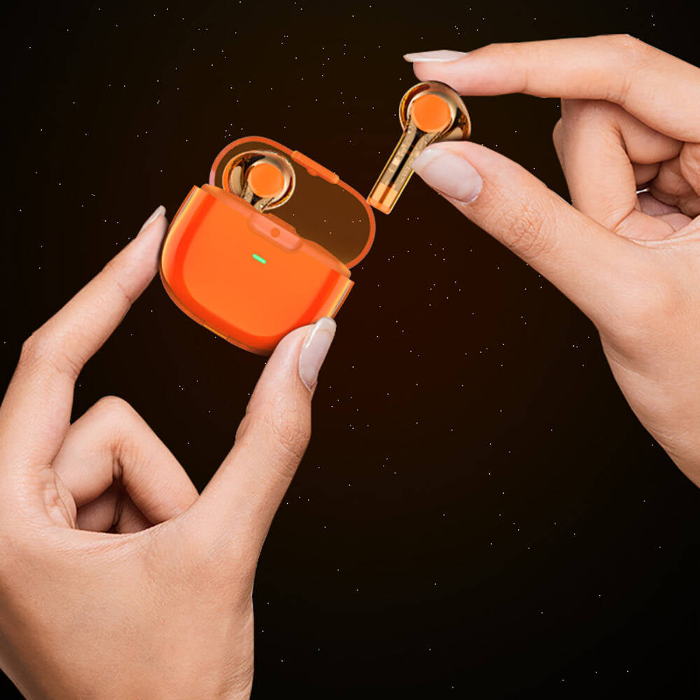 Recci REP-W50 Şeffaf Tasarım Hi-Fi Ses Kaliteli Bluetooth v5.3 Amber Serisi Kulak İçi Kulaklık Turuncu