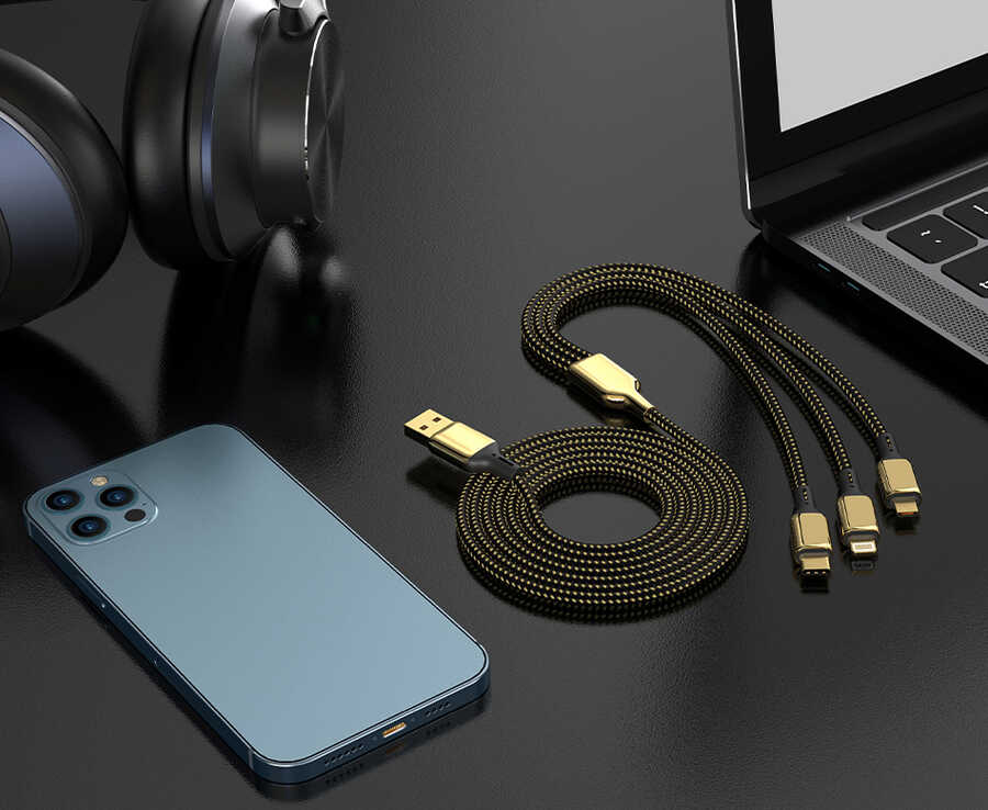 Wiwu Golden Series GD-104 3 in 1 Data Kablo 1.2M Gold