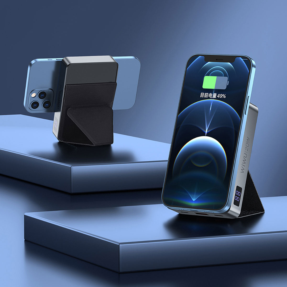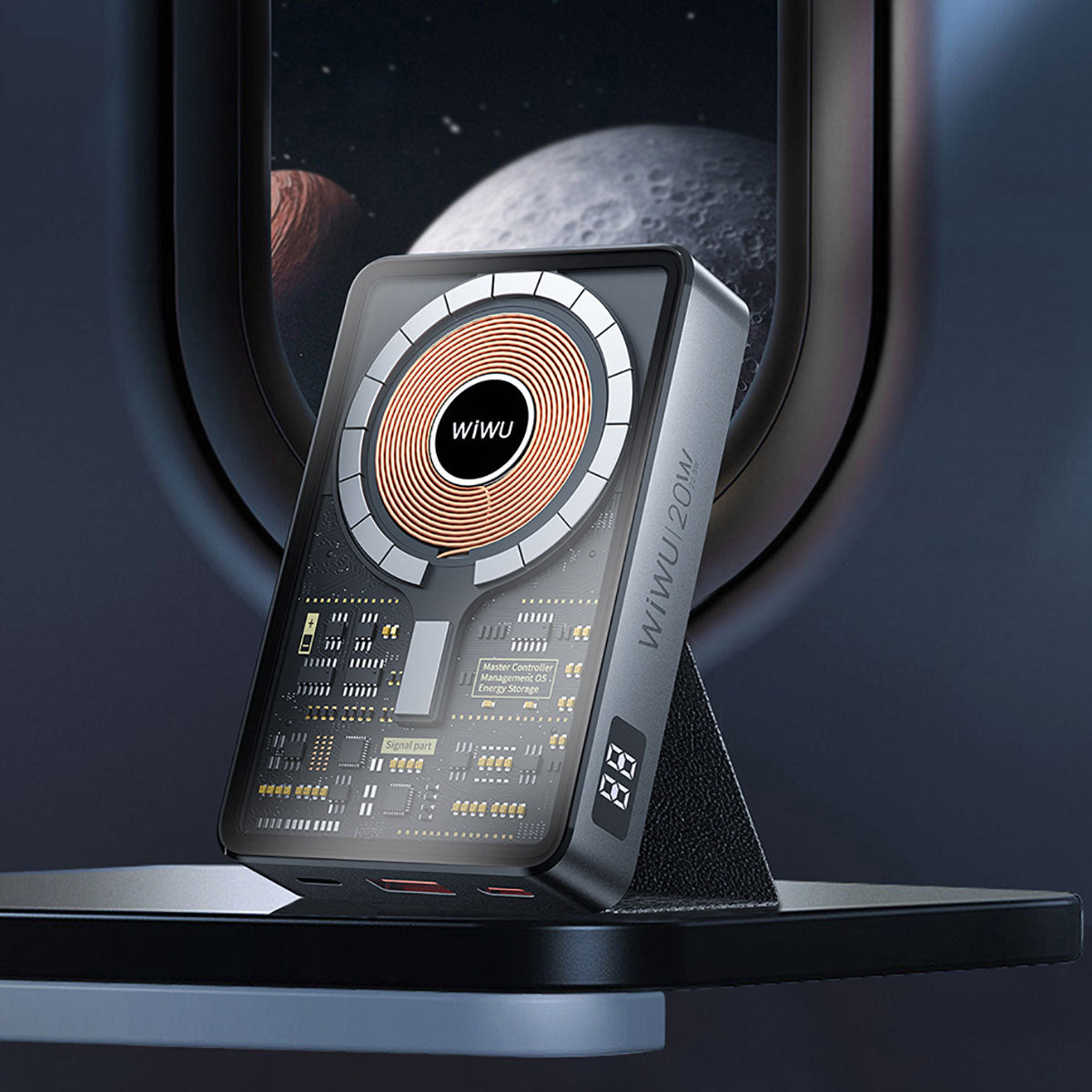 Wiwu JC-21 Hızlı Şarj Özellikli Şarj Göstergeli Standlı Magsafe Wireless Powerbank 22.5W 10000mAh