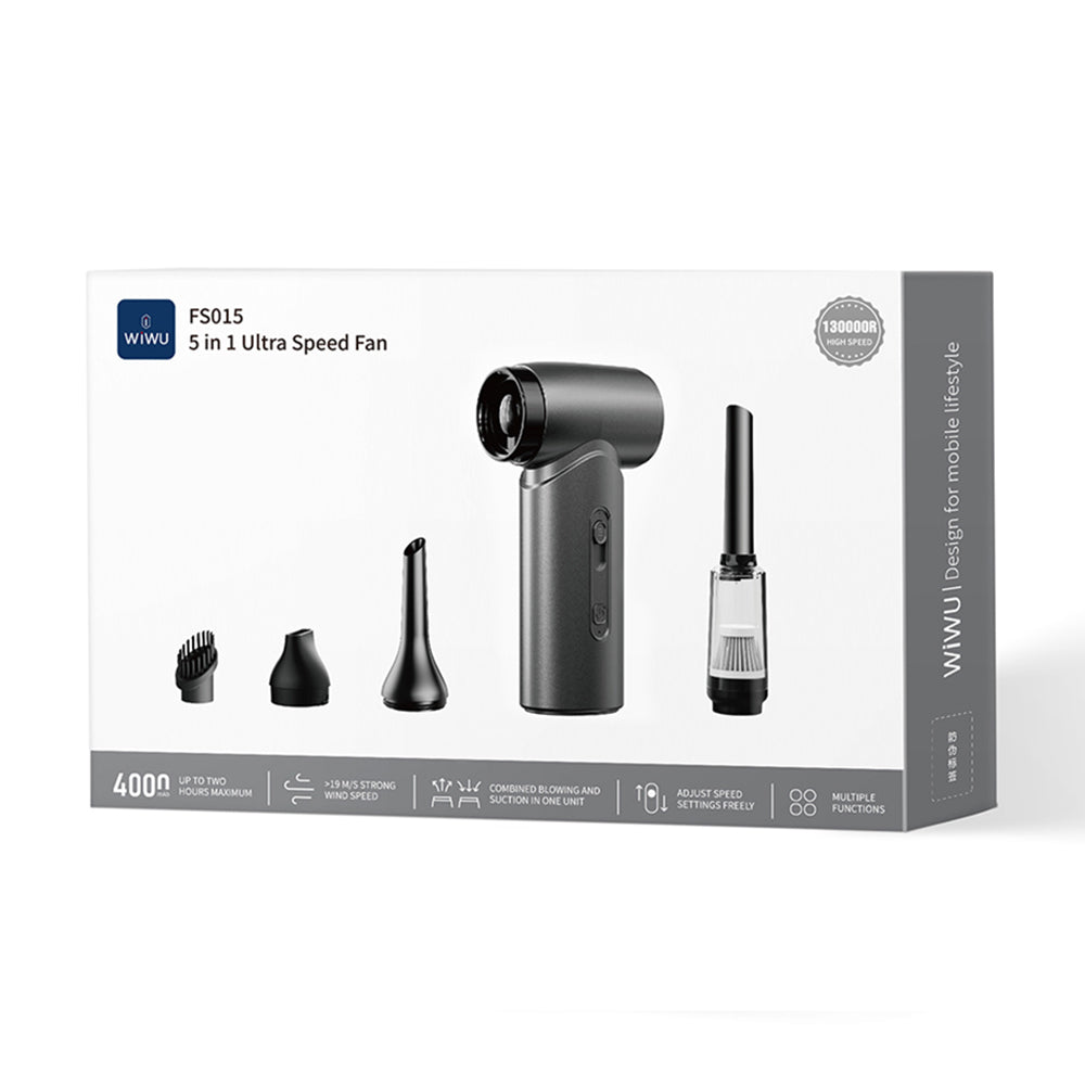 Wiwu Wi-FS015 Üfleme-Emme-Vakumlama ve Şişirme 5in1 Elektrikli Oto Araç Süpürgesi 50000PA Gri