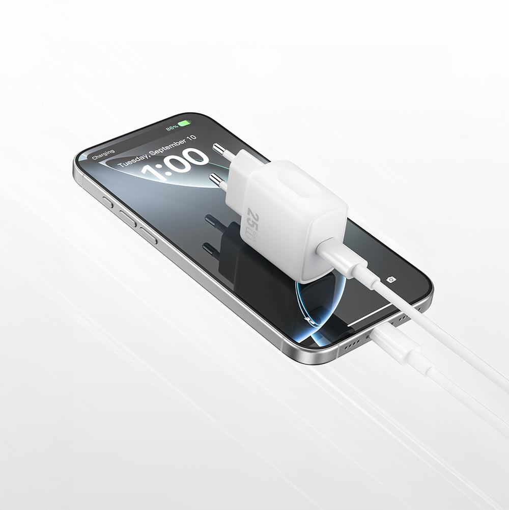 Gelişmiş GaN teknolojisiyle donatılmış bu şarj başlığı, 25W güç kapasitesiyle günlük şarj ihtiyaçlarınızı maksimum verimlilikle karşılıyor. Kompakt yapısı sayesinde cebinize, çantanıza ya da seyahat çantanıza kolayca sığar ve her yerde yanınızda taşımaya uygundur. Ofiste, kafede ya da havaalanı bekleme salonunda priz ararken kaybettiğiniz zamanı, artık sadece birkaç dakikada hızlı şarj avantajına dönüştürebilirsiniz.