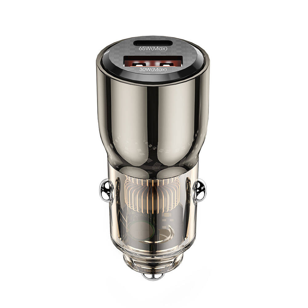 Wiwu Wi-QC012 Geek Serisi Type-C + USB-A Hızlı Şarj Özellikli Transparan Tasarımlı Araç Şarj Aleti 95W
