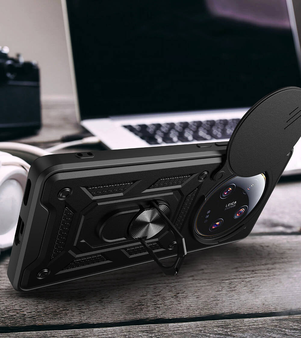 Xiaomi Mi 13 Ultra Kılıf Magnetik Standlı Kamera Korumalı Zore Sürgülü Vega Kapak Mavi