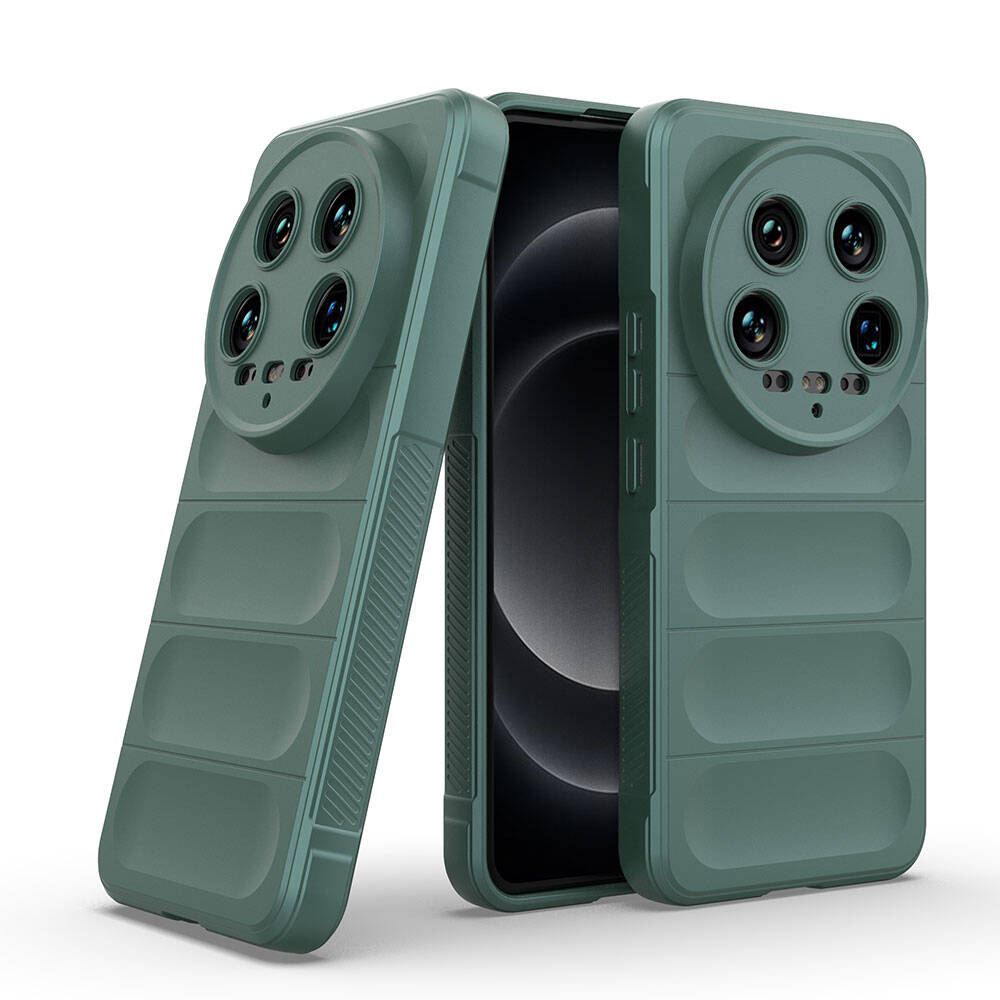 Xiaomi Mi 14 Ultra Kılıf Esnek TPU Oyuklu Arka Yüzey Tasarımlı Zore Etnik Silikon Kapak Koyu Yeşil