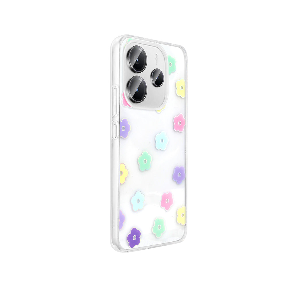 Xiaomi Redmi Note 14 4G Kılıf Şeffaf Figürlü Zore Folk Sert Kapak Papatya