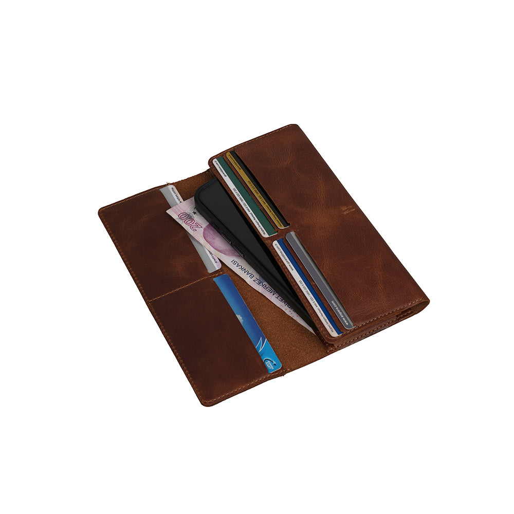 Günlük hayatınızı kolaylaştıran bu özel cüzdan, telefon ve kart taşıma ihtiyacınızı tek bir yerde topluyor. Deri malzemesiyle zarif bir görünüm sunarken, güçlü dikiş detayları ve dayanıklı yapısıyla uzun ömürlü bir kullanım sağlıyor.