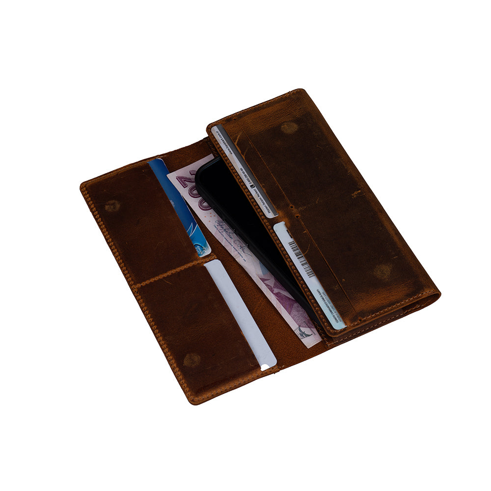 Günlük hayatınızı kolaylaştıran bu özel cüzdan, telefon ve kart taşıma ihtiyacınızı tek bir yerde topluyor. Nubuk deri malzemesiyle zarif bir görünüm sunarken, güçlü dikiş detayları ve dayanıklı yapısıyla uzun ömürlü bir kullanım sağlıyor.